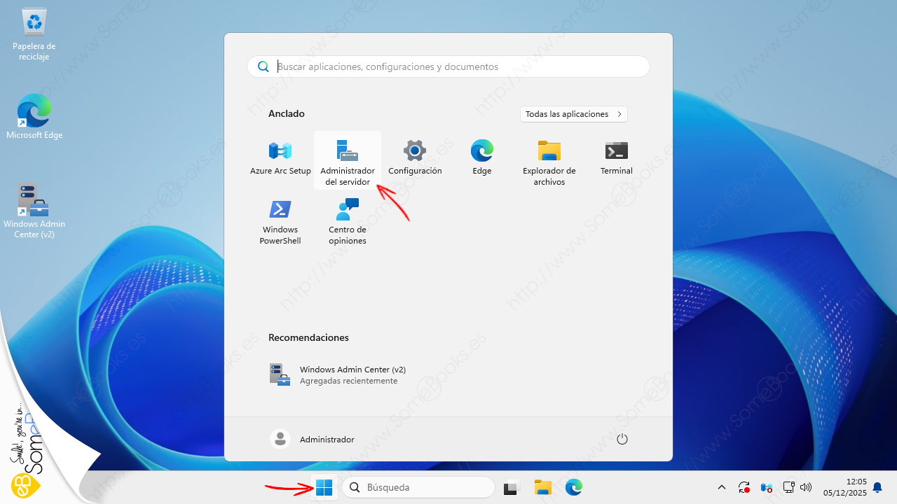 En versiones anteriores de Windows Server, teníamos un acceso directo al Administrador del servidor en la Barra de tareas del Escritorio. Si quieres recuperar esta funcionalidad, puedes echar un vistazo a nuestro artículo Anclar un programa a la barra de tareas de Windows 11… y cómo desanclarlo, (que tiene una versión para Windows 10). Son artículos que puedes aplicar directamente sobre Windows Server 2025.
