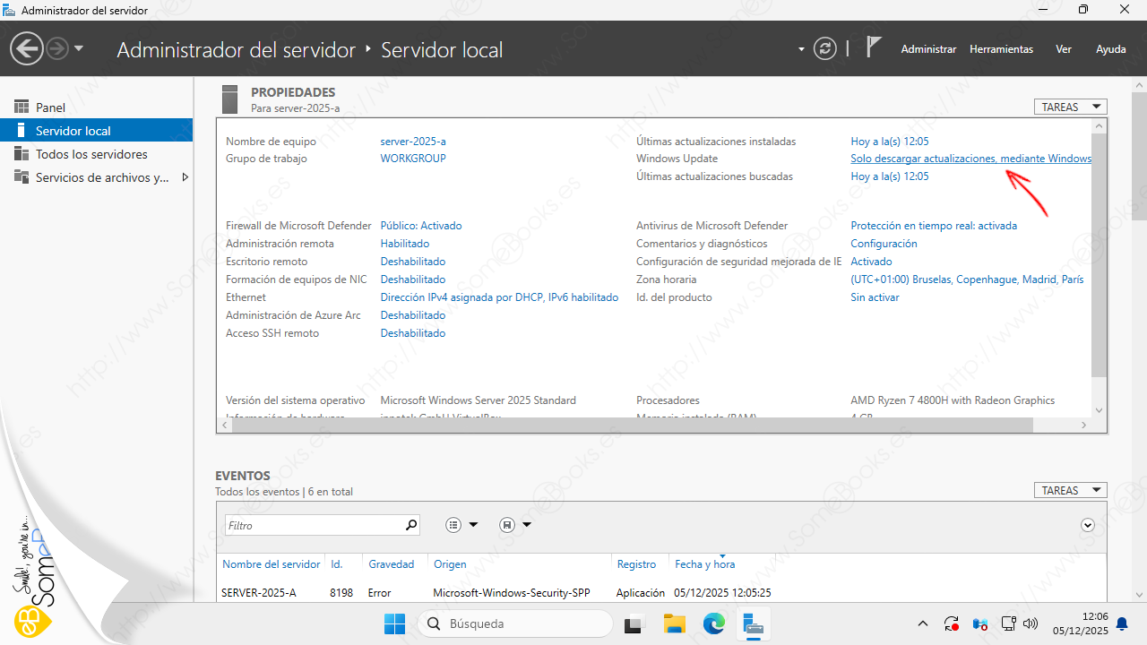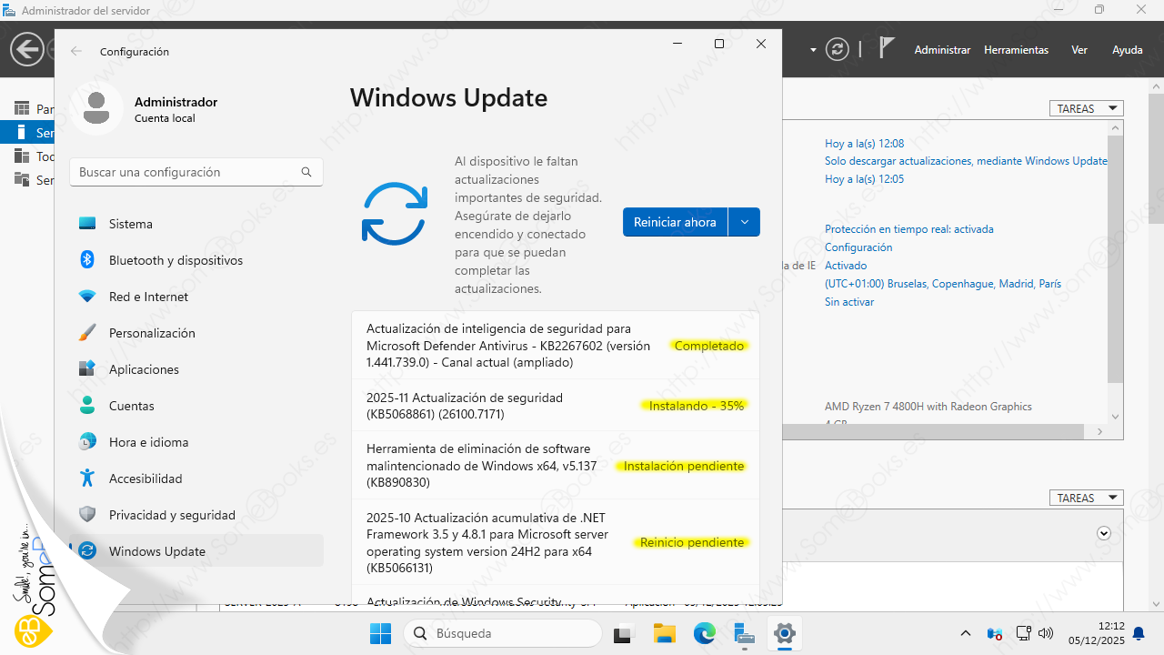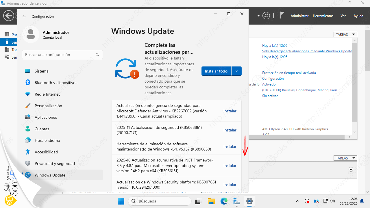 Instalar actualizaciones en Windows Server 2025 con GUI