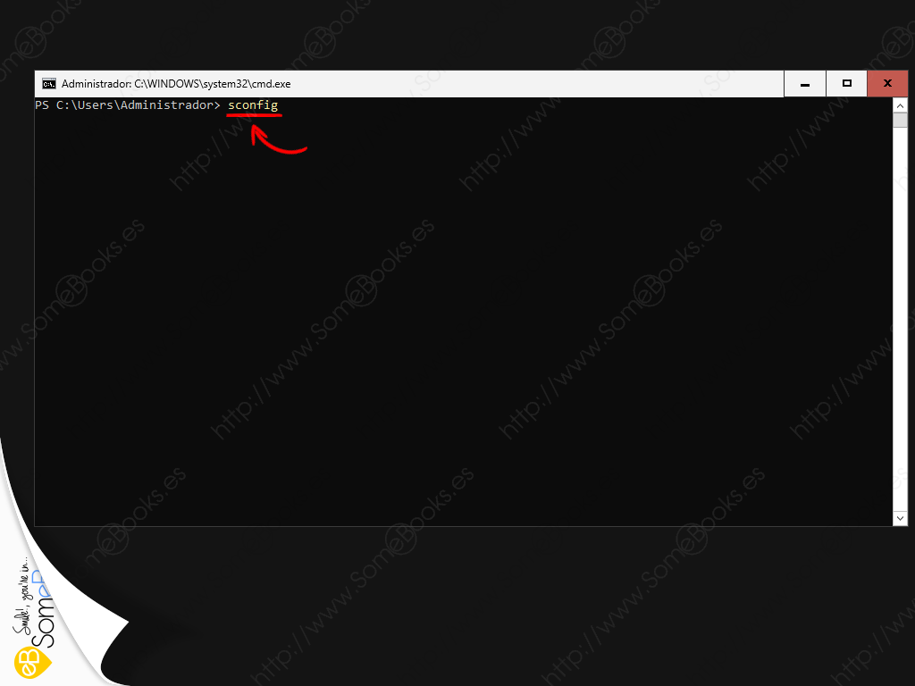 El trabajo lo realizaremos mediante el comando sconfig.cmd.
