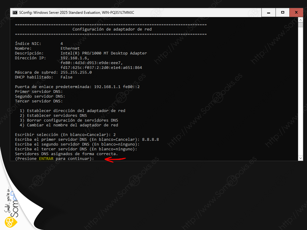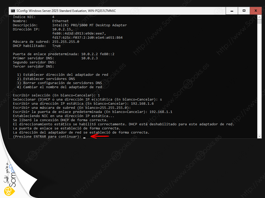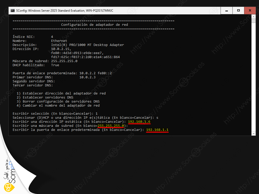 Hoy aprenderemos a establecer dicho valor fijo para la dirección IP en un ordenador con Windows Server 2025 sin escritorio. Y, de paso, también para la máscara de subred, la puerta de enlace e incluso el servidor DNS para el servidor.